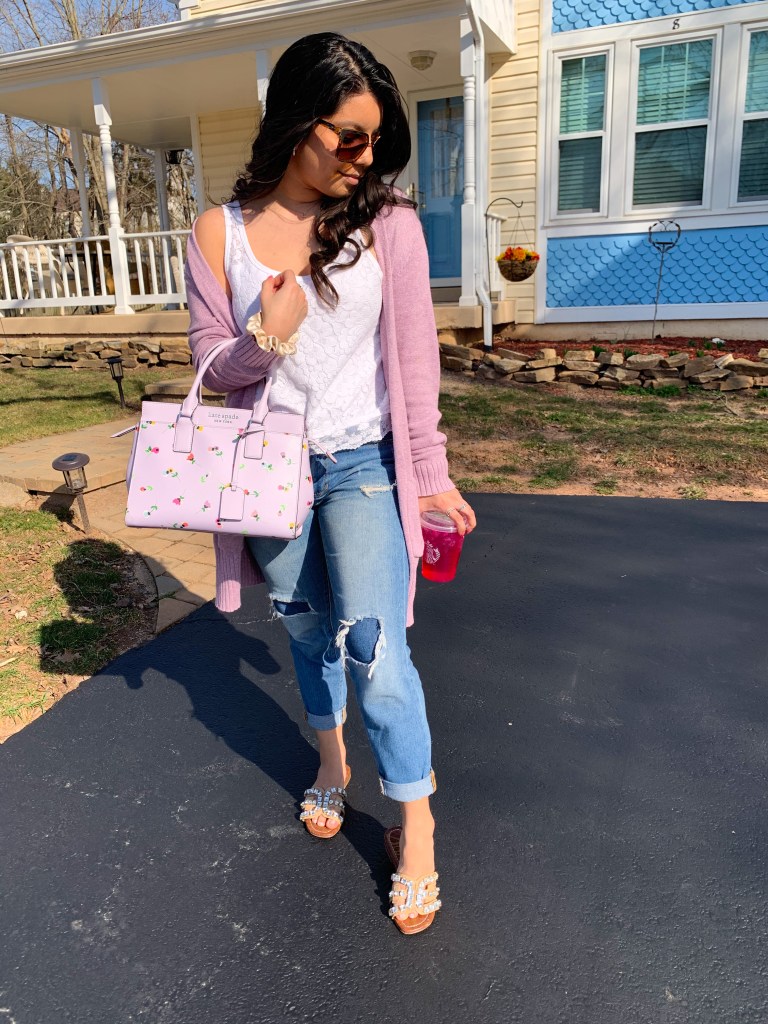 This week, specifically yesterday, the weather here in Virginia finally hit over 75 degrees and I instantly felt myself become happier as I walked outside. Does anyone else’s mood correlate directly with the weather? I have always liked being in a state that has all four seasons but it definitely makes me feel better when I am able to finally enjoy the warmer months. Now that the weather is starting to feel like its finally back on my side, I have realized that my wardrobe is still in the thick of my fall and winter clothes. For those of you who don’t know, I am 100% a seasonal wardrobe changer.🌷 I have several storage boxes that are rotated between the warm and cold months depending on whichever one I don’t need in my closet at the time. While I usually have a strict break between the separation of my clothes between the months, I try to keep versatile pieces within each set of clothes to make sure I can accommodate those awkward transitional months… like the one we are currently in.